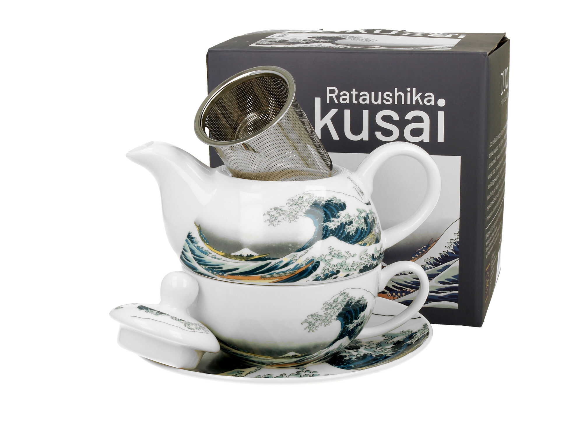 Filiżanka z dzbankiem i spodkiem THE GREAT WAVE inspired by K. Hokusai