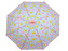 Dětský vystřelovací deštník je velice oblíbený pro svůj zajímavý průsvitný materiál a hravý design. Na rukojeti má visačku, na kterou můžete napsat jméno dítěte. Má klasickou tyč zakončenou pevnou rukojetí. Konstrukce deštníku je z pružných lamel a tvoří osm polí.