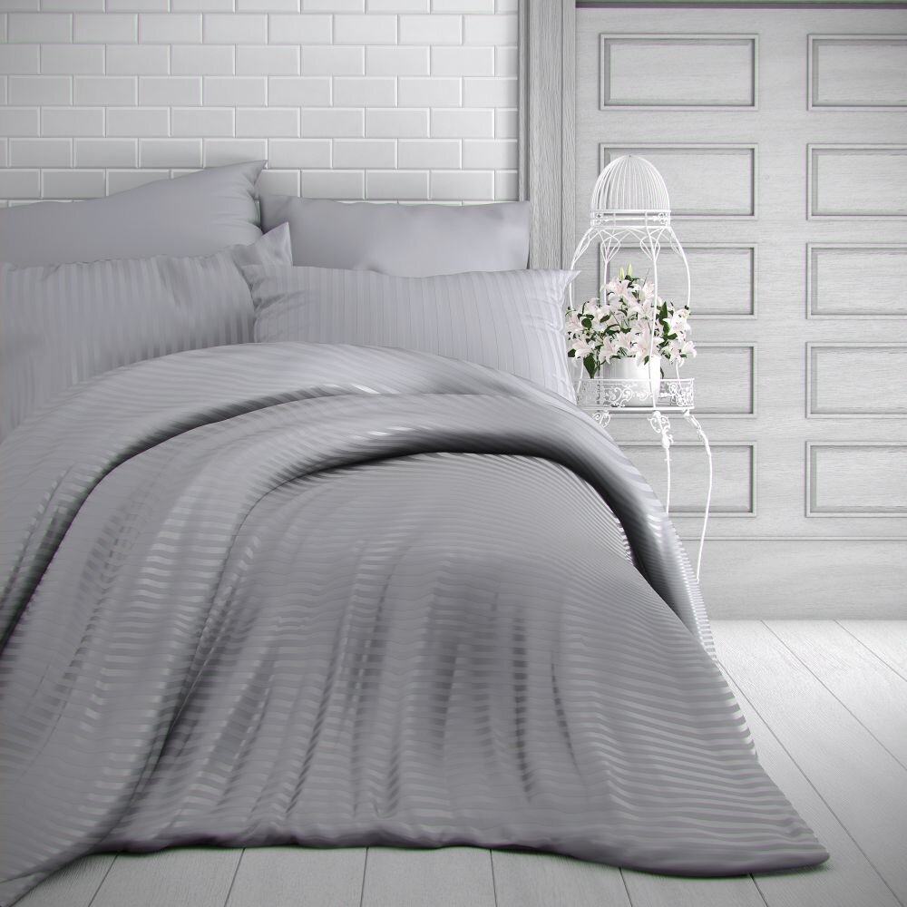 Francouzské saténové prodloužené povlečení s proužkem 1+2, 240x220, 70x90cm SVĚTLE ŠEDÉ