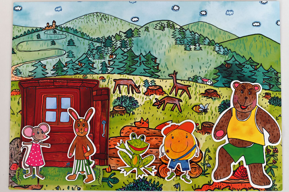 Loutky a kulisy k pohádce Boudo budko, kdo v tobě přebývá. Kvalitní výrobek z ekologického materiálu motivuje děti k vytváření vlastních příběhů. Díky veselému a vtipnému výtvarnému zpracování formuje i jejich estetické vnímání. Oboustranné loutky, kulisa Bouda, scéna se dvěma motivy. Pohádku...