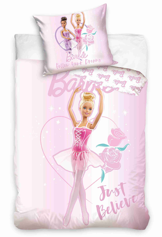 Růžové povlečení s Baletkou BarbieDětské povlečení Barbie Baletka je vyrobeno ze 100% hladké bavlny renforcéPovlečení je oboustranné a je vyrobeno v rozměru  140x200/ 70x90 cmNa růžové lícní straně povlaku přikrývky je Barbie v baletních šatičkáchBarbie se připravuje na své baletní představení a...