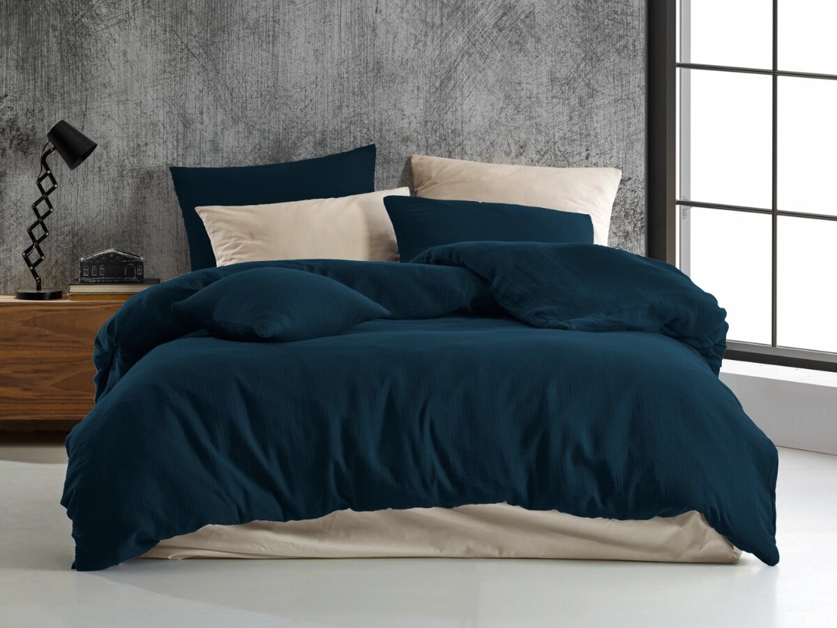 Mušelínové povlečení 140x200, 70x90 cm tmavě modré
