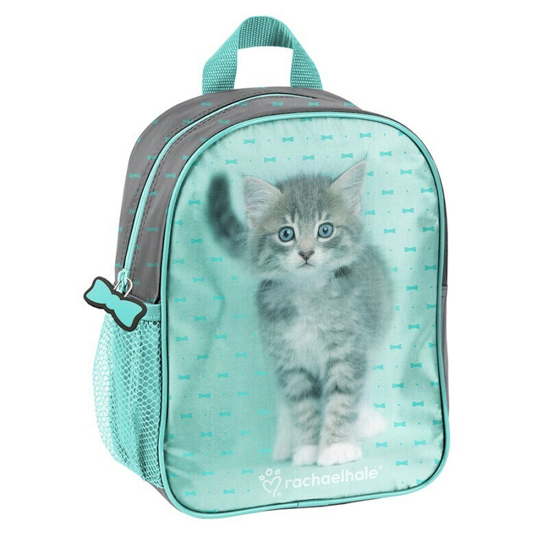 Plecak przedszkolny Rachael Hale miętowo-szary. Posiada jedną komorę oraz boczną kieszonkę wykonaną z siatki, w której można przechować małą butelkę, bidon lub termos. Plecak wyposażony jest w regulowane szelki, dzięki którym można idealnie dostosować plecak do wzrostu dziecka. Plecak ma wygodny...