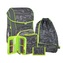 Sada obsahuje: školskú tašku, vrecko na prezúvky, naplnený peračník, okrúhle puzdro, peňaženku a nášivku na suchý zips s dizajnom na ozdobenie tašky.