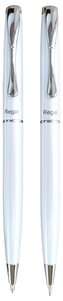 kuličkové pero s otočným mechanismem, modrou vyměnitelnou náplní + mikrotužka 0,5mm uložené v dárkové krabičce, bílé kovové tělo+ dárková taška Regal prečítať celé