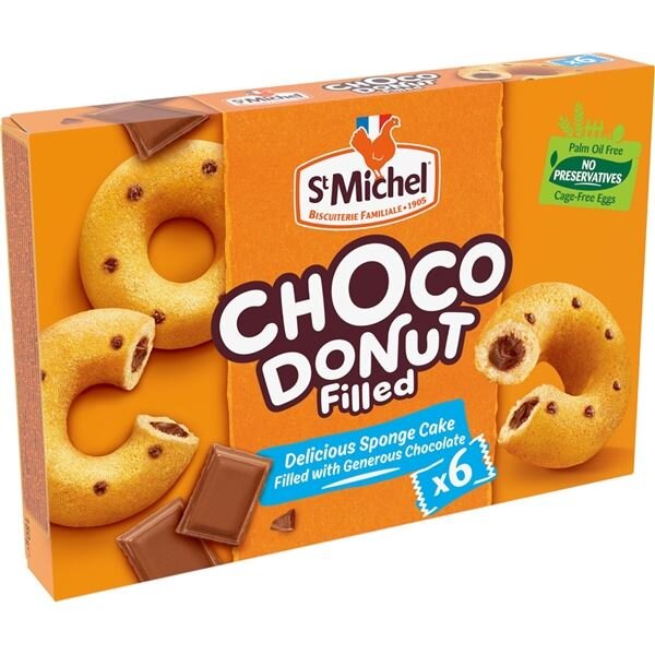 St Michel Choco Donuty - jemné tradiční francouzské donuty z kynutého těsta plněné čokoládovou náplní ;Bez konzervantů;Bez palmového oleje;Bez umělých barviv a aromat;Balení obsahuje 6 jednotlivě zabalených donutů;Gramáž: 180 g prečítať celé