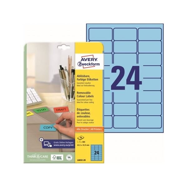 Snímat.etikety Avery, modré, 63,5 x 33,9 mm,480 ks