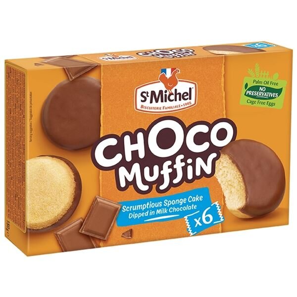 St Michel Choco Muffin - jemné měkké francouzské pečivo polomáčené v mléčné čokoládě;Bez konzervantů;Bez palmového oleje;Bez umělých barviv a aromat;Balení obsahuje 6 jednotlivě zabalených sušenek;Gramáž: 180 g prečítať celé