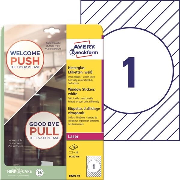 Bílé, oboustranně potisknutelné etikety na sklo s plastovým povrchem;Oboustranný tisk pro informaci viditelnou zvenčí i z vnitřku;Užití: upozornění a informace vhodné na okenní tabule, výlohy, prosklenné dveře nebo autoskla;Etikety na sklo se aplikují zevnitř a jsou čitelné zvenčí, tím jsou...