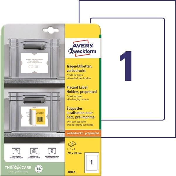 Nosné etikety Avery, 220 x 160 mm, bílé, 5 ks