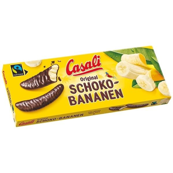 Čokoládové banánky Casali, pěnová cukrovinka s banánovou dření máčená v čokoládě (31 %) ;Fairtrade banány, cukr & čokoláda bez umělých barviv a konzervantů s kakaem z vlastní pražírny v recyklovatelném obalu;Hmotnost: 300 g prečítať celé