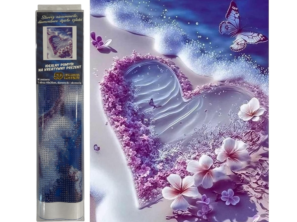 Diamantové malování - Srdce na pláži 30 x 40 cm