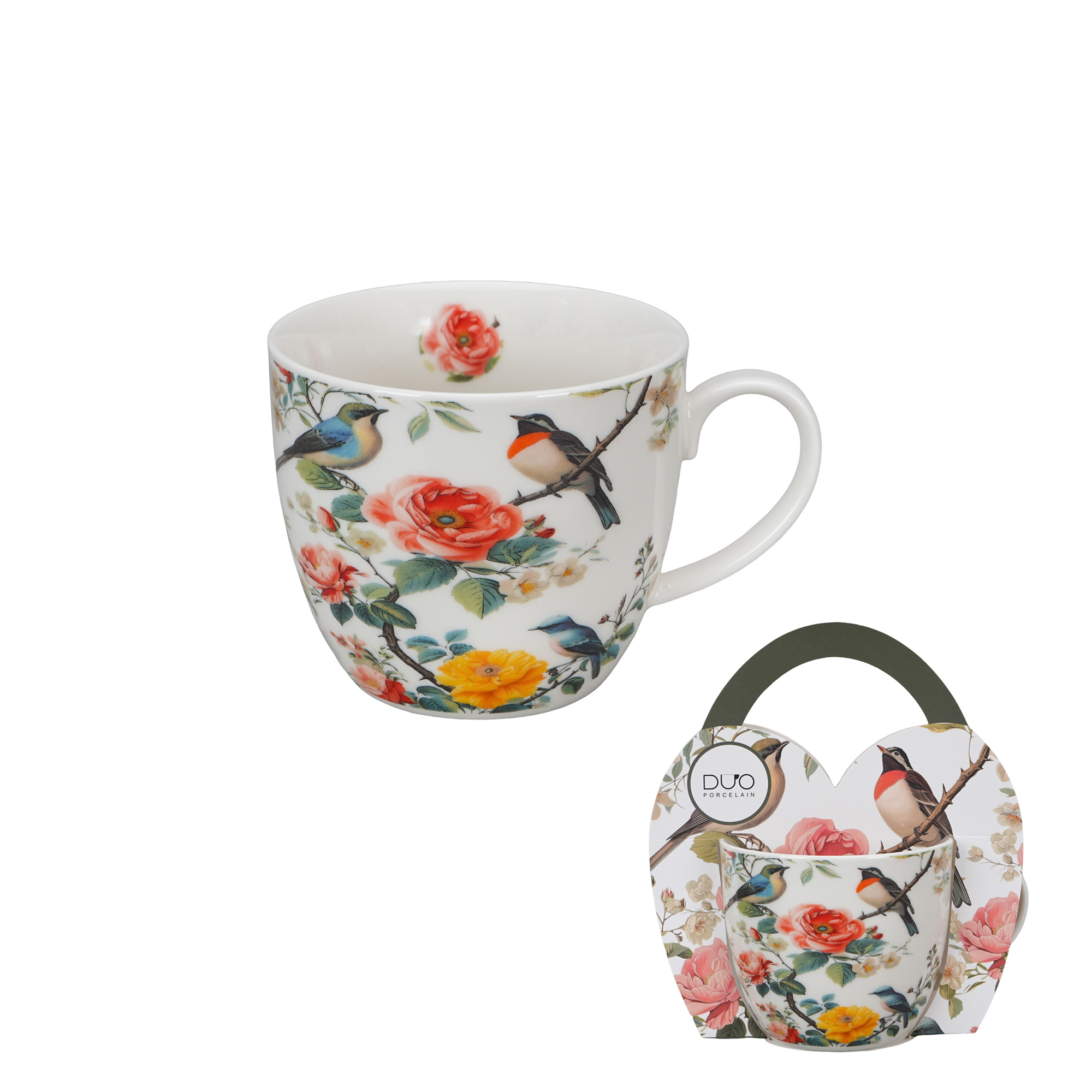 Kubek 460 ml w koszyczku APRIL wchodzący w skład linii Kwiaty Classic wykonany z porcelany New Bone China, która charakteryzuje się naturalnym kremowo-białym kolorem z delikatnym połyskiem oraz wyjątkową wytrzymałością i trwałością. Linia zdobiona delikatnym motywem różanych krzewów w...