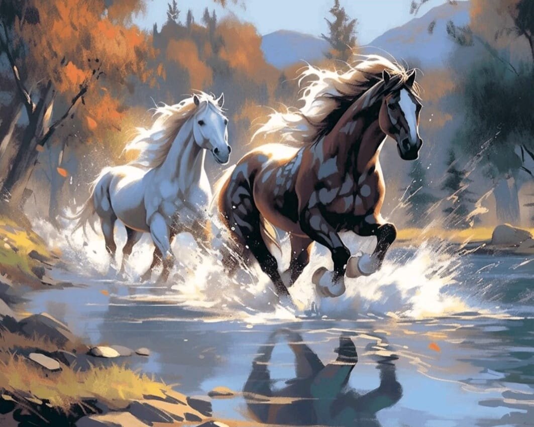 Diamantové malování - Dva koně v cvalu 30 x 40 cm