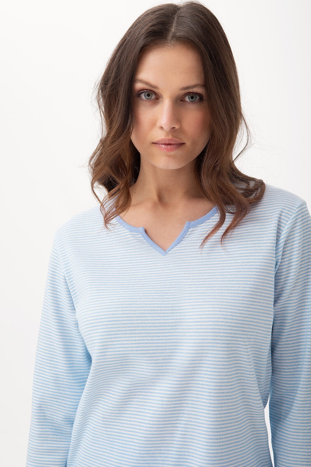Bawełniana piżama damska- koszulka w paski- długi rękaw- dekolt z efektownym wycięciem- spodnie długie, jednolite prečítať celé