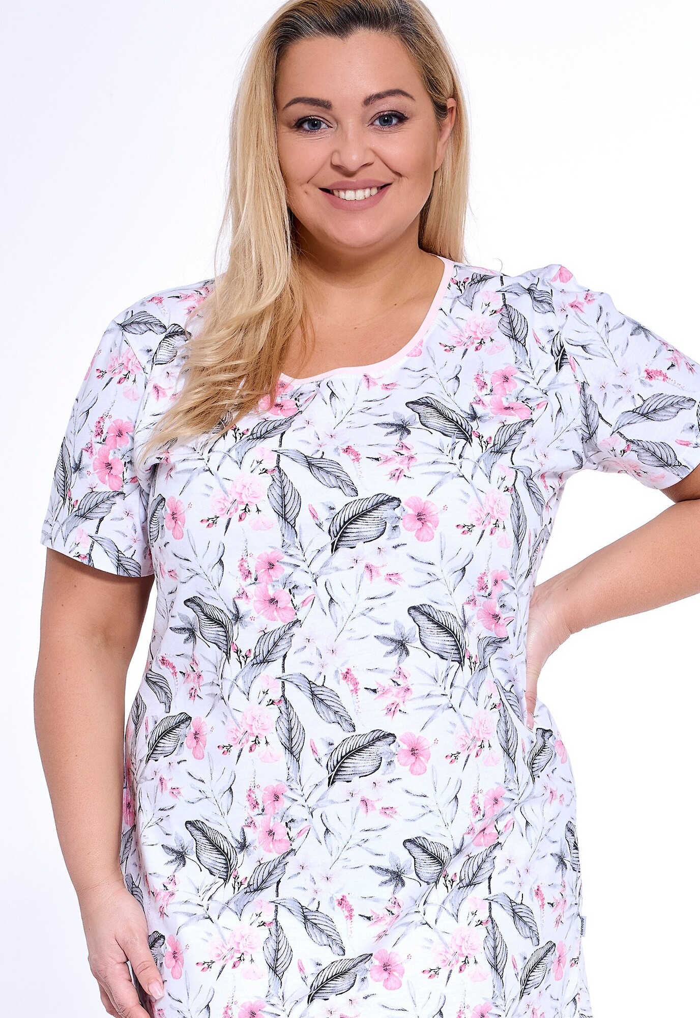 Koszula nocna- wysoka jakość bawełny- print w kolorowe kwiaty- krótki rękaw- półokrągły dekolt prečítať celé