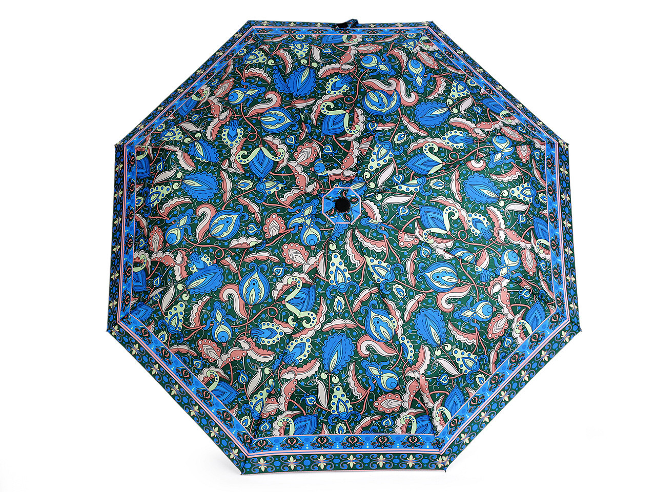 Velký dámský deštník je skládací, plně automatický Je vyrobený z kvalitního materiálu. Na potahu deštníku je poutavý paisley motiv. Deštník má vystřelovací / sestřelovací mechanizmus. Rozevře i zavře se stisknutím tlačítka se šipkou nahoru nebo dolů. Rukojeť deštníku je plastová, opatřená...