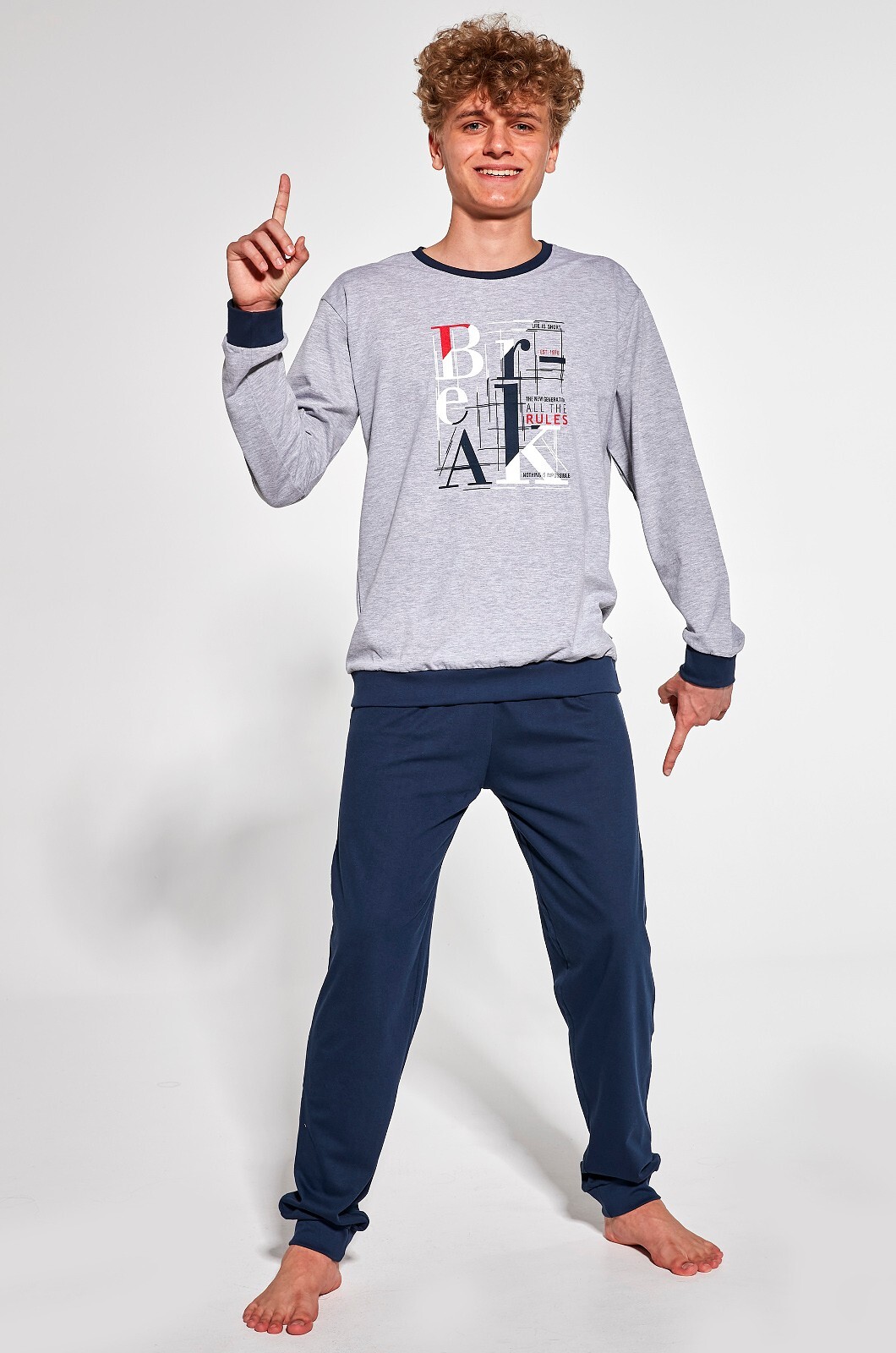 Piżama Cornette F&Y Boy 999/49 Break Rules dł/r 164-182 szary 182/L
