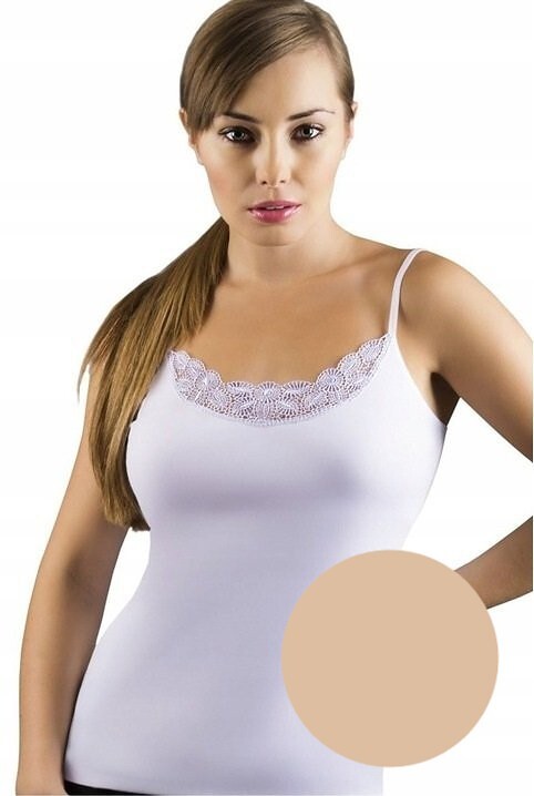 Koszulka damska- z wysokiej jakości bawełny- na wąskich ramiączkach- dekolt zdobi wstawka efektownej gipiury prečítať celé