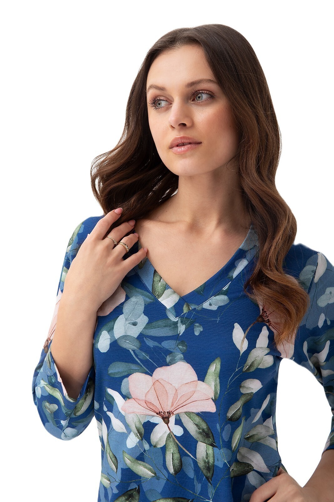Koszula Luna 197 3/4 S-2XL damska niebieski-kwiaty L