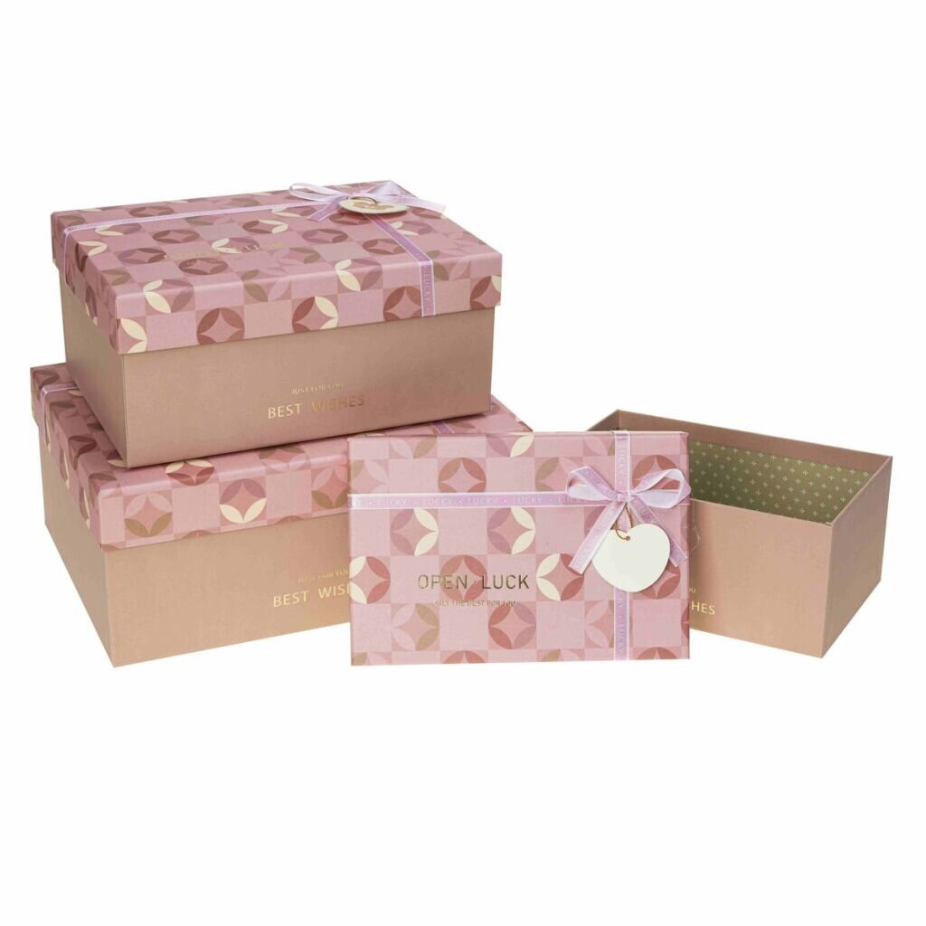 Sada dárkových krabic.Rozměry: 14,5 x 14,5 x 7 cm; 17,5 x 17,5 x 9 cm; 20 x 20 x 11 cm prečítať celé