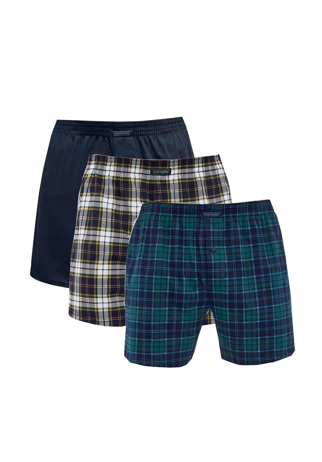 Bokserki męskie- wykonane są z wysokiej jakości bawełny- dwie z klasycznym wzorem w kratę, jedna w kolorze granatowym- rozporek zapinany na guziki- luźny krój zapewnia pełną swobodę ruchów- doskonale sprawdzą się zarówno na co dzień, jak i do spania- zapakowane w praktyczne, zamykane na suwak...
