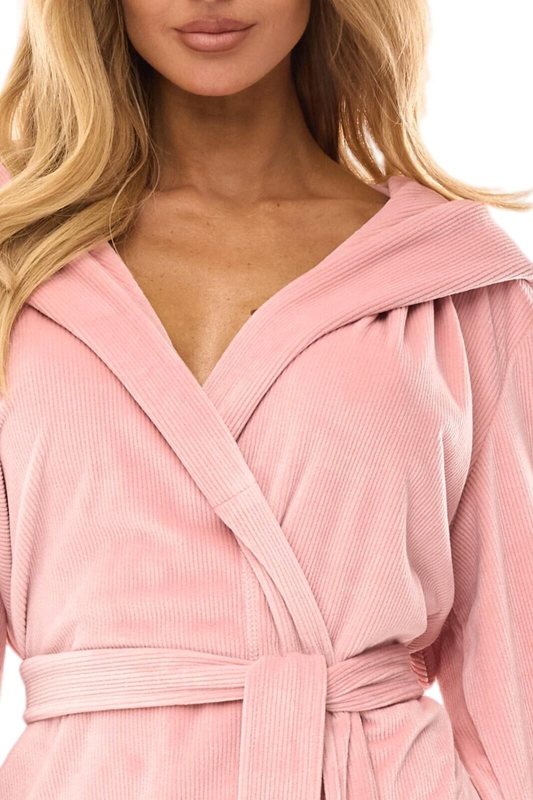 Krótki szlafrok damski z kapturem- struktura materiału w drobny prążek imitujący sztruks- długi rękaw- wiązany w pasie, z kieszeniami prečítať celé