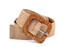 Pružný pásek je velice praktický. Má zajímavou strukturu z navzájem propletených pruženek a imitace juty. Klasická spona na zapnutí, která je zdobená reliéfem připomínajícím dřevo, se díky síťované struktuře pásku dá zapnout v jakékoliv délce. Největší obvod zapnutého pásku je 95 cm.