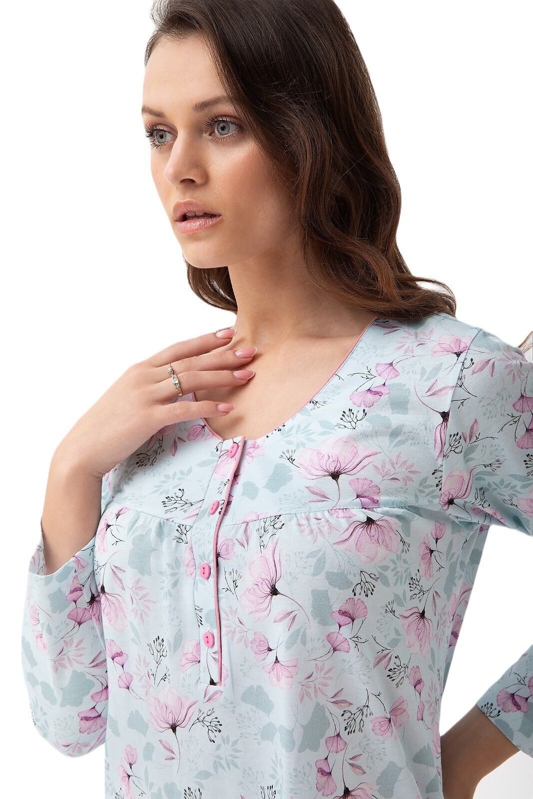 Bawełniana koszula damska- efektowny kwiatowy wzór- długi rękaw- dekolt lekko marszczony, zapinany na guziki- długość za kolano prečítať celé