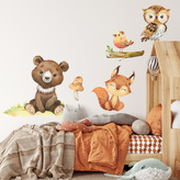 Samolepka na zeď - Medvěd, veverka, ptáček a sova XL