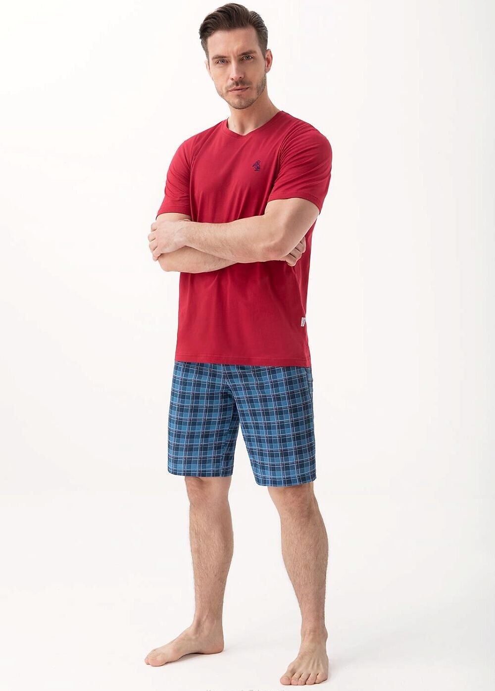 Piżama męska- wysokiej jakości bawełna- koszulka z krótkim rękawem- z przodu delikatny haft pelikana- do kompletu krótkie spodenki w kratkę- po bokach wygodne kieszenie prečítať celé