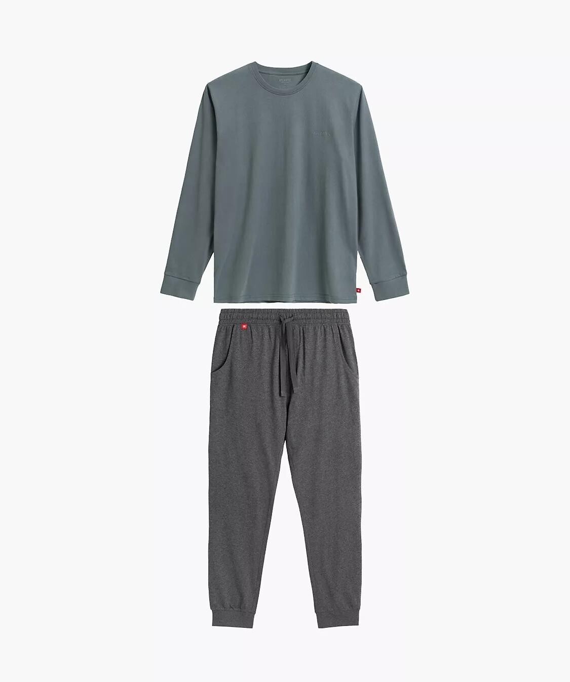 Wyjątkowa piżama męska- oversize?owy krój- koszulka z długim rękawem- zdobiona delikatnym napisem- miękka i przytulna dzianina z wyjątkowym ?efektem brzoskwini?- spodnie z długą nogawką- sznurek do regulacji w pasie- boczne kieszenie- maksymalna wygoda noszenia- nogawki, rękawy i dół bluz z elastycznymi ściągaczamiSkład: 100% bawełna