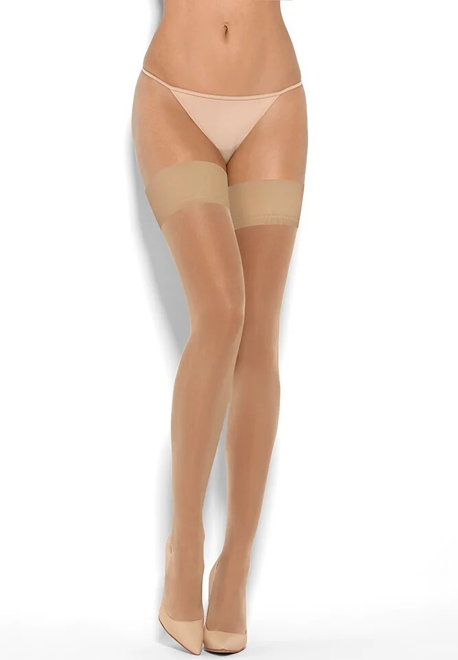 Pończochy samonośne 15 den- z gładkim wykończeniem na silikonie- bez wzmocnienia na palcachSkład: 90% poliamid, 10% elastan prečítať celé