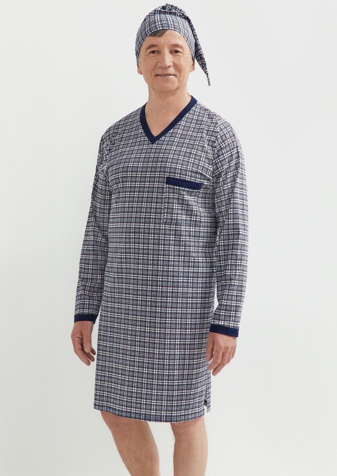 Koszula nocna męska- z długim rękawem- dekolt w szpic- bawełna w kratę prečítať celé