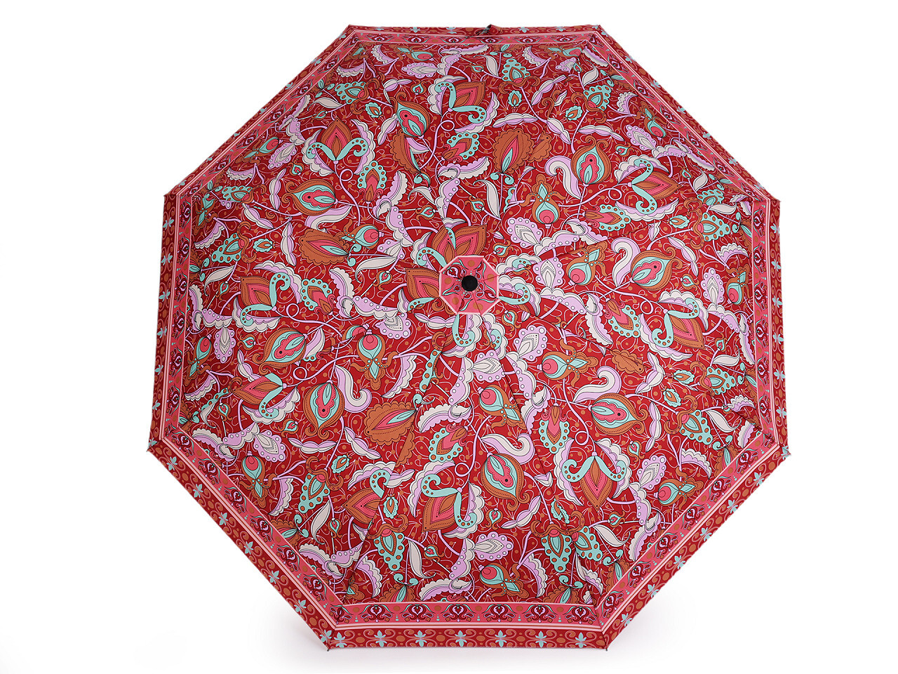 Velký dámský deštník je skládací, plně automatický Je vyrobený z kvalitního materiálu. Na potahu deštníku je poutavý paisley motiv. Deštník má vystřelovací / sestřelovací mechanizmus. Rozevře i zavře se stisknutím tlačítka se šipkou nahoru nebo dolů. Rukojeť deštníku je plastová, opatřená poutkem. Konstrukce deštníku se skládá z osmi polí. Součástí deštníku je ochranný obal.