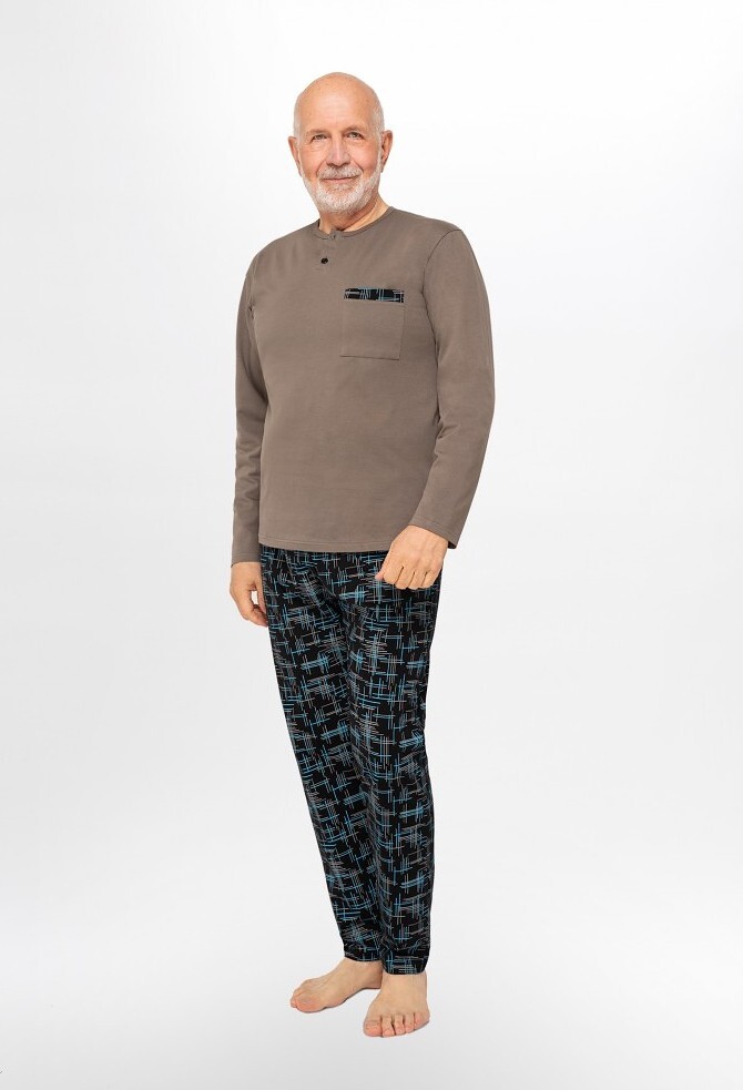 Piżama męska- koszulka z długim rękawem- dekolt zapinany na guziki- naszyta mała kieszonka- spodnie z długą nogawką, wzorzyste- z kieszeniami prečítať celé