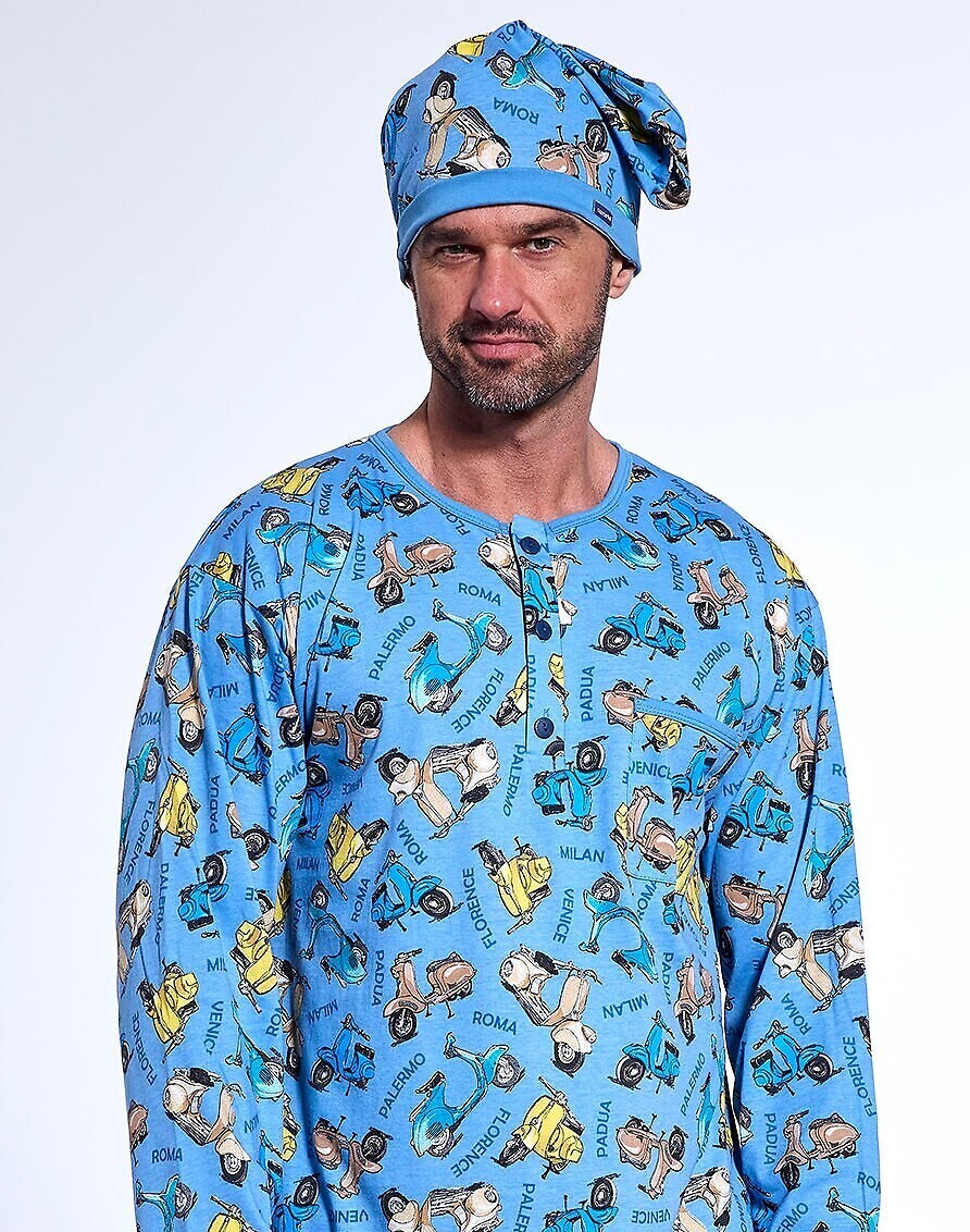 Koszula nocna, męska- wysokiej jakości bawełna- ozdobny kolorowy print- długi rękaw- dekolt zapinany na guziki- na piersi naszyta mała kieszonka- do kompletu szlafmycaSkład: 100% bawełna prečítať celé