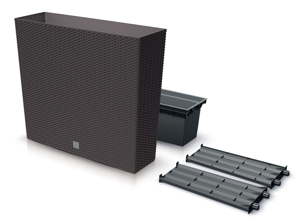 Tento truhlík dĺžky 77 cm v modernej farbe umbra skvele zapadne do rôznych štýlov vonkajšieho priestoru. Vyššia konštrukcia truhlíka umožňuje pestovanie nielen dekoratívnych rastlín, ale aj byliniek či zeleniny, bez toho, aby ste sa museli skloniť k zemi. Vložka zjednodušuje manipuláciu s pôdou aj prípadné presádzanie rastlín, čím šetrí váš čas a energiu.