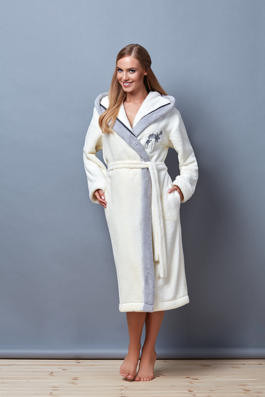 Szlafrok L&L SD HLLR 7115 długi M-2XL damski ecru XL-172/106/114