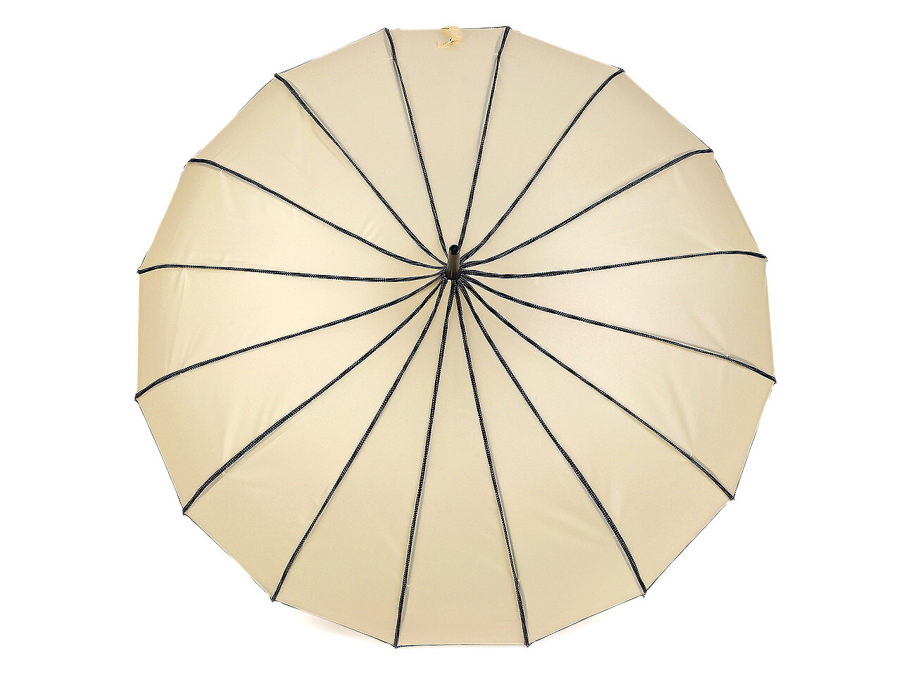 Designový deštník pagoda je díky svému tvaru inspirovanému tradičními pagodami skvělým módním doplňkem. Spolehlivě vás ochrání v nepříznivém počasí. Konstrukce z kovového drátu tvoří 16 polí. Díky ní je deštník velice pevný, neohne se ani za největšího nečasu. Klasickou tyč má zakončenou pevnou rukojetí.