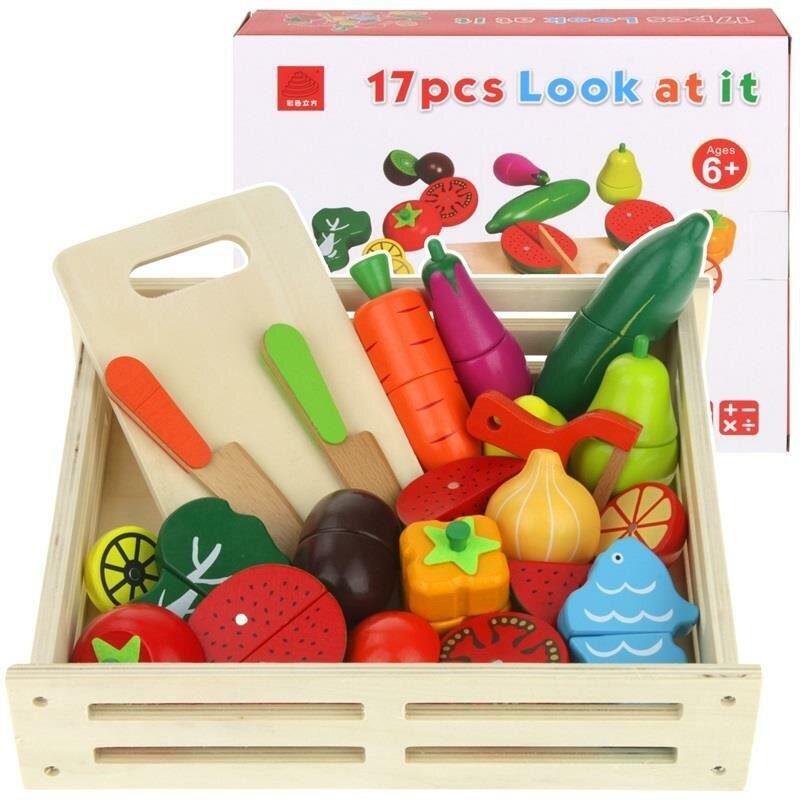 Warzywa i owoce do krojenia w skrzynce, drewno