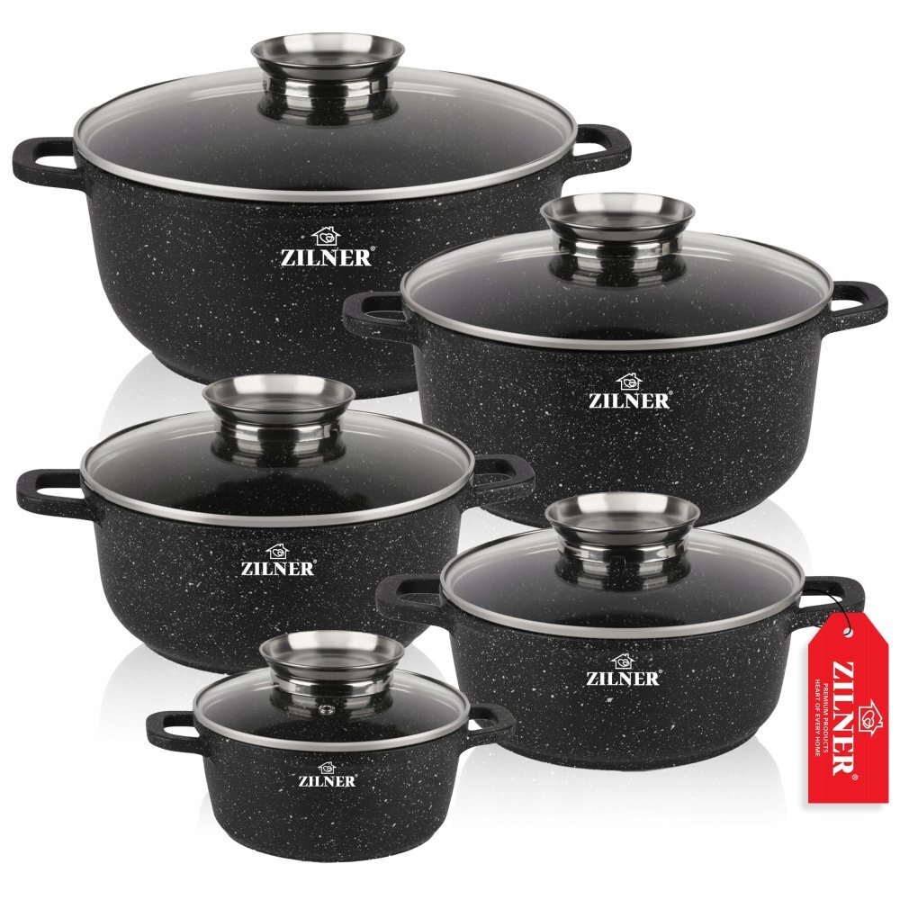 Sada 10 hrncov s mramorovým povrchom je skvelou voľbou pre každú modernú kuchyňu, ktorá vyžaduje kvalitu, všestrannosť a štýl v jednom balení. Užívajte si pohodlné varenie bez obmedzení vďaka odolnému riadu, ktorý zvládne všetko od malých porcií po vydatné rodinné večere.