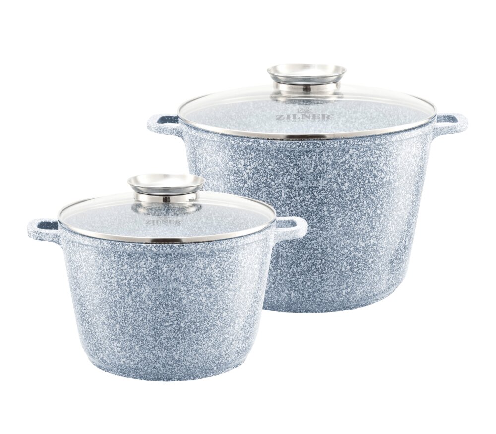 Sada hrnců Zilner ZL-7066 v elegantním šedém provedení kombinuje moderní design, funkčnost a dlouhou životnost. Obsahuje 2 hrnce s odpovídajícími skleněnými víčky – celkem 4 ks. Vyrobeny z kvalitního hliníku s nepřilnavou keramicko-mramorovou povrchovou úpravou, odolnou proti korozi, poškrábání a...