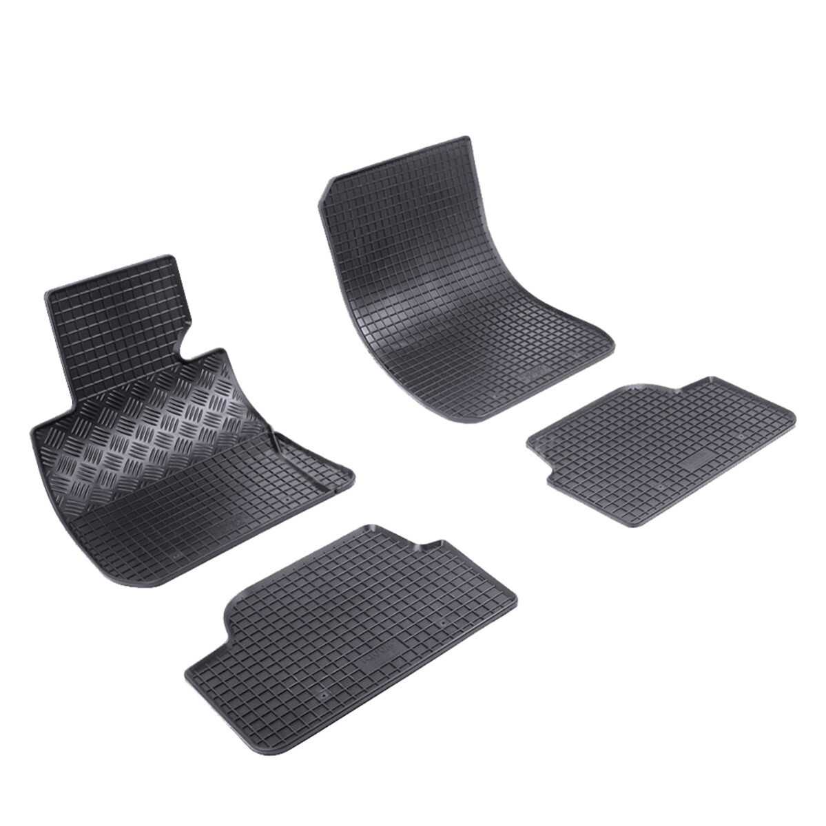 Kvalitní gumové autokoberce pro vůz BMW 1 (E87). Autokoberce mají tradiční (čtverčkovaný) design, díky kterému nedochází k přelévání vody, popř. tajícího sněhu po kobercích. Okraj autokoberců je přibližně 1 cm vysoký.