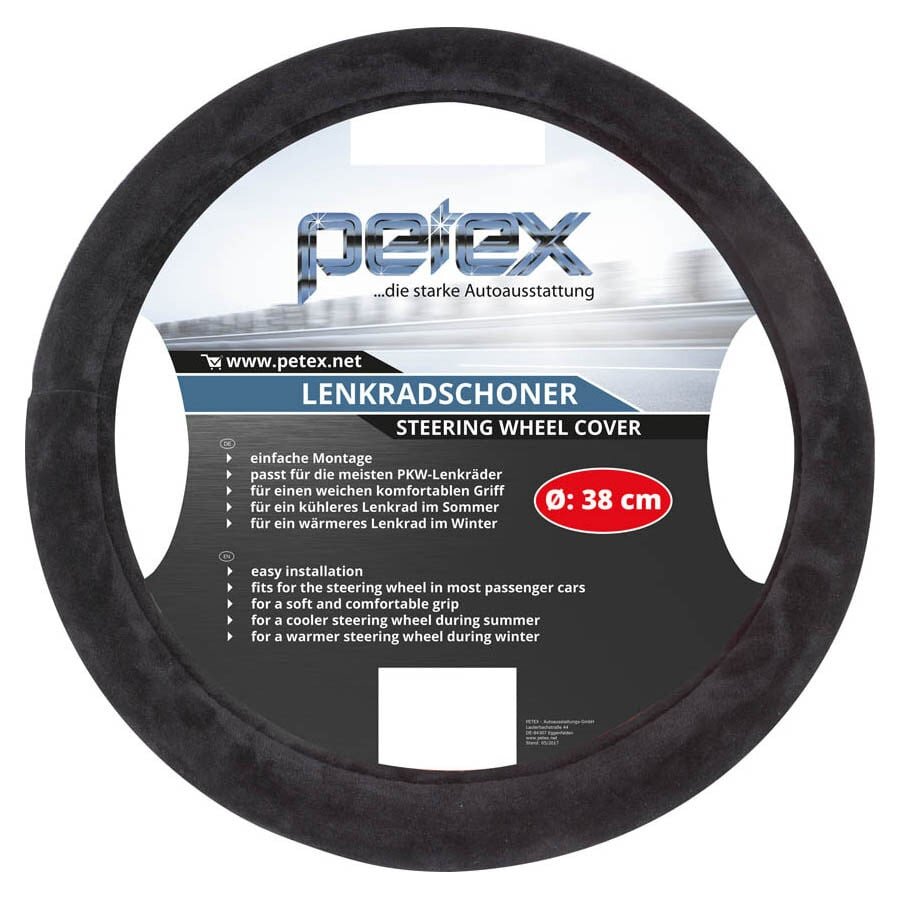 Plyšový potah volantu o průměru 38cm je vhodný pro většinu volantů běžných osobních automobilů.Vnitřní strana volantu je opatřena protiskluzovou texturou, která zabraňuje klouzání potahu po volantu. Vnější plyšový povrch je velmi příjemný na dotek a zároveň výborně tlumí vibrace.