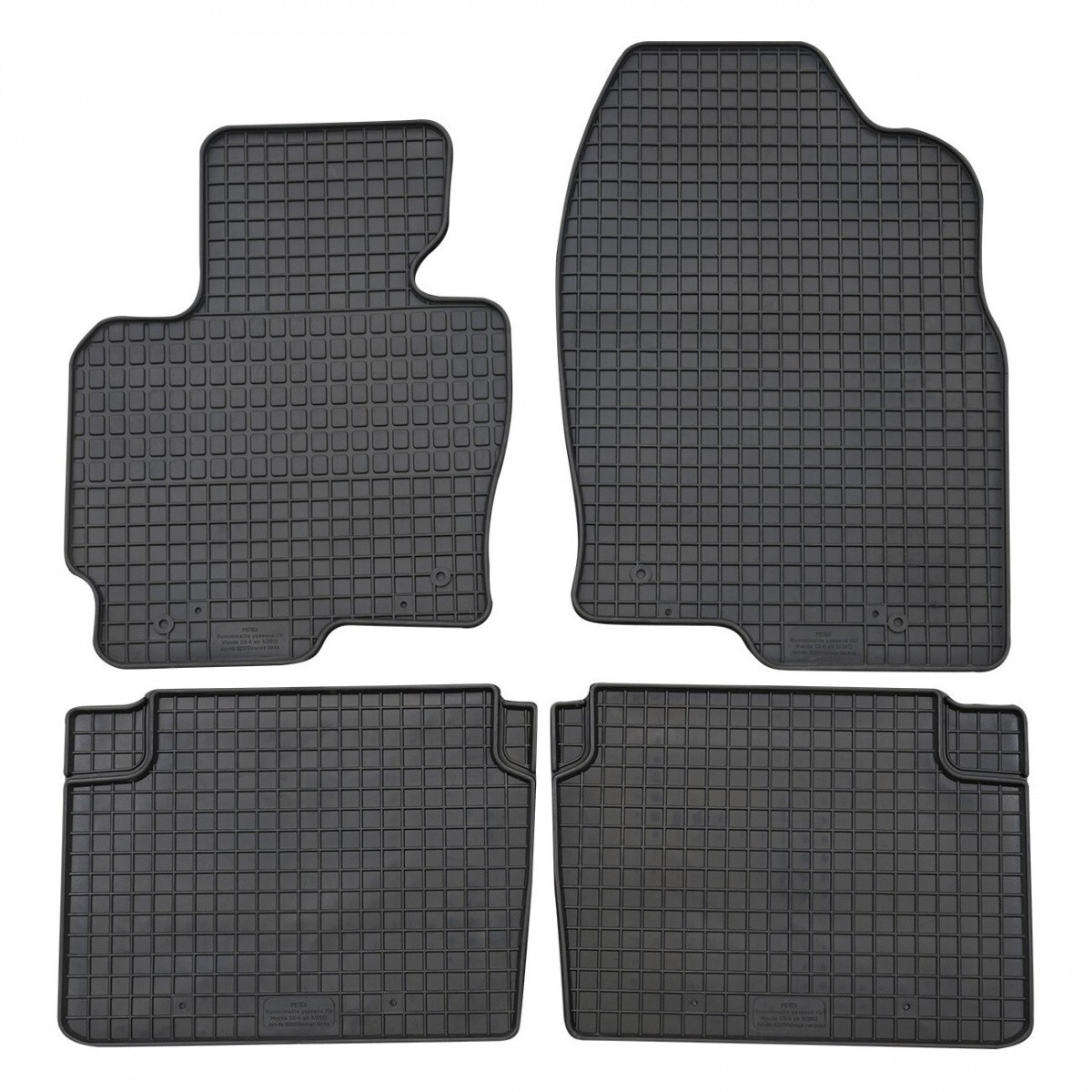 Kvalitní gumové autokoberce pro vůz Mazda CX-5,které mají tradiční (čtverečkovaný) design, díky kterému nedochází k přelévání vody nebo tajícího sněhu po kobercích. Okraj autokoberců je přibližně 1 cm vysoký.Autokoberce od německého výrobce PETEX jsou vyráběné na míru a přesně pasují do interiéru...