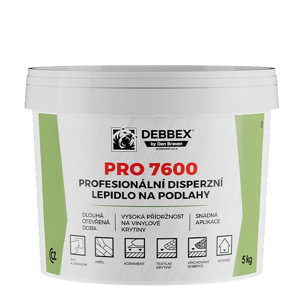 Profesionální bezrozpouštědlové podlahové lepidlo, na bázi disperze. Vytváří trvale pevný, elastický spoj. Okamžitě a snadno použitelné, lehce roztíratelné. Vysoká přilnavost k savým materiálům. K lepení podlahových krytin na savý podklad. Použití: lepení vinylových dílců, koberce (podélné...