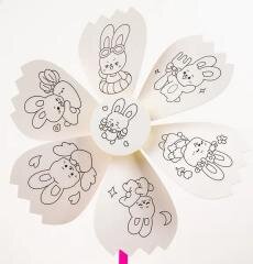 papierowy wiatraczek z szablonem do malowania, 6 końcówek, centralne koło, patyczek, całkowita długość złożonego wiatraczka 38,5 cm prečítať celé