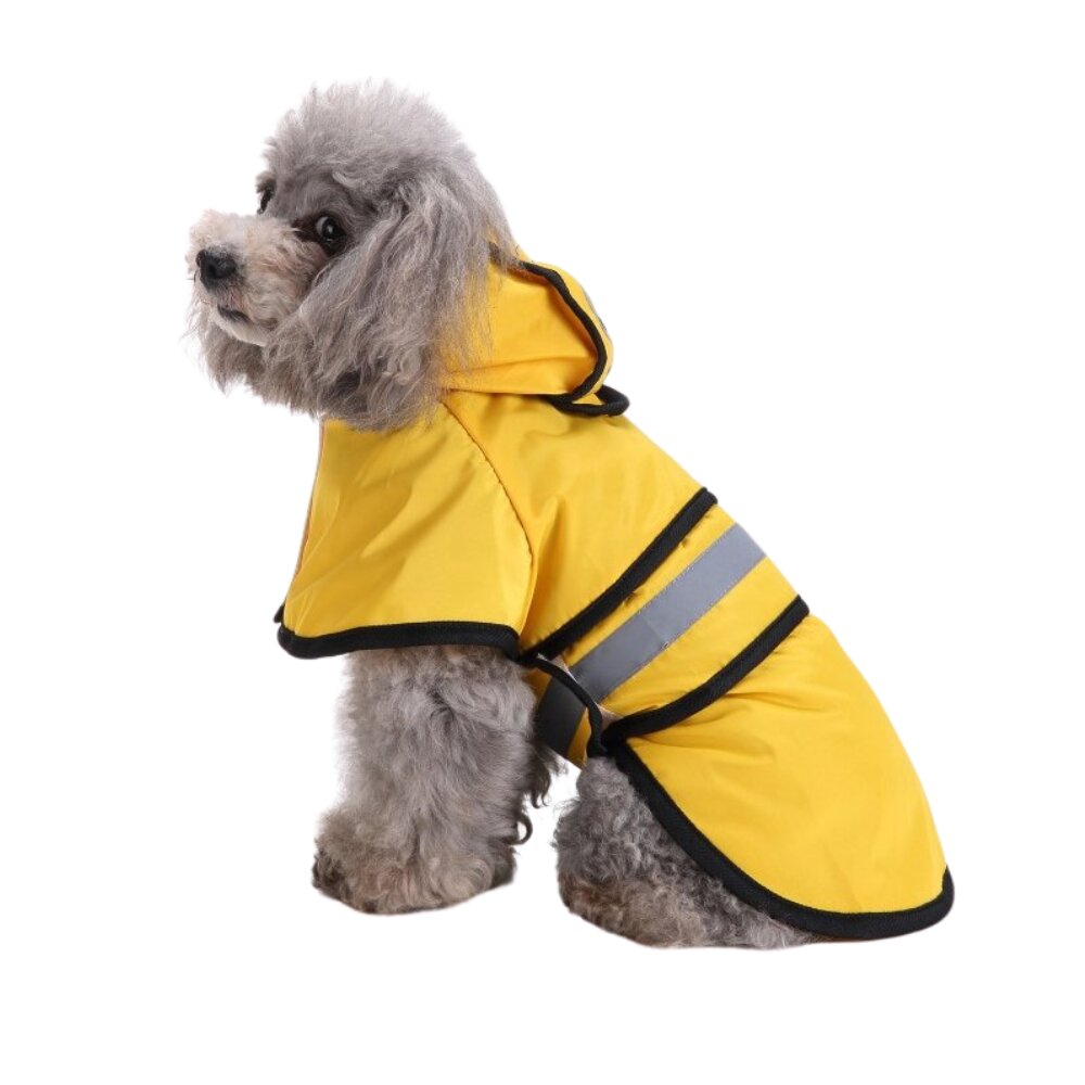 Praktická nepromokavá pláštěnka moderního střihu s kapucí je ideální ochranou před deštěm. Stylový design zajišťuje, že váš mazlíček zůstane suchý a v pohodlí i během nepříznivého počasí, zatímco reflexní prvky zvyšují viditelnost a bezpečnost pejska.