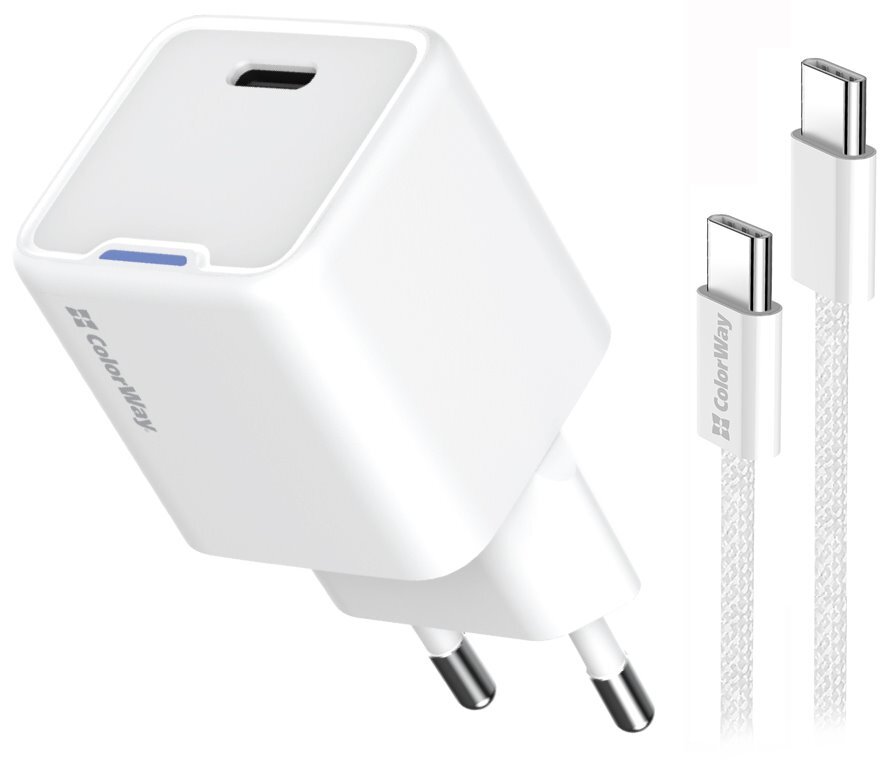 COLORWAY 1x USB-C/ síťová nabíječka/ GaN/ PD/ PPS/ 35W/ Včetně 100cm kabelu/ Bílá
